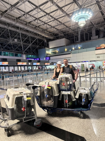 The only part that took longer was at the airport, where the staff needed over two hours to input all five dogs’ data — probably because we had so many! 😅