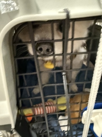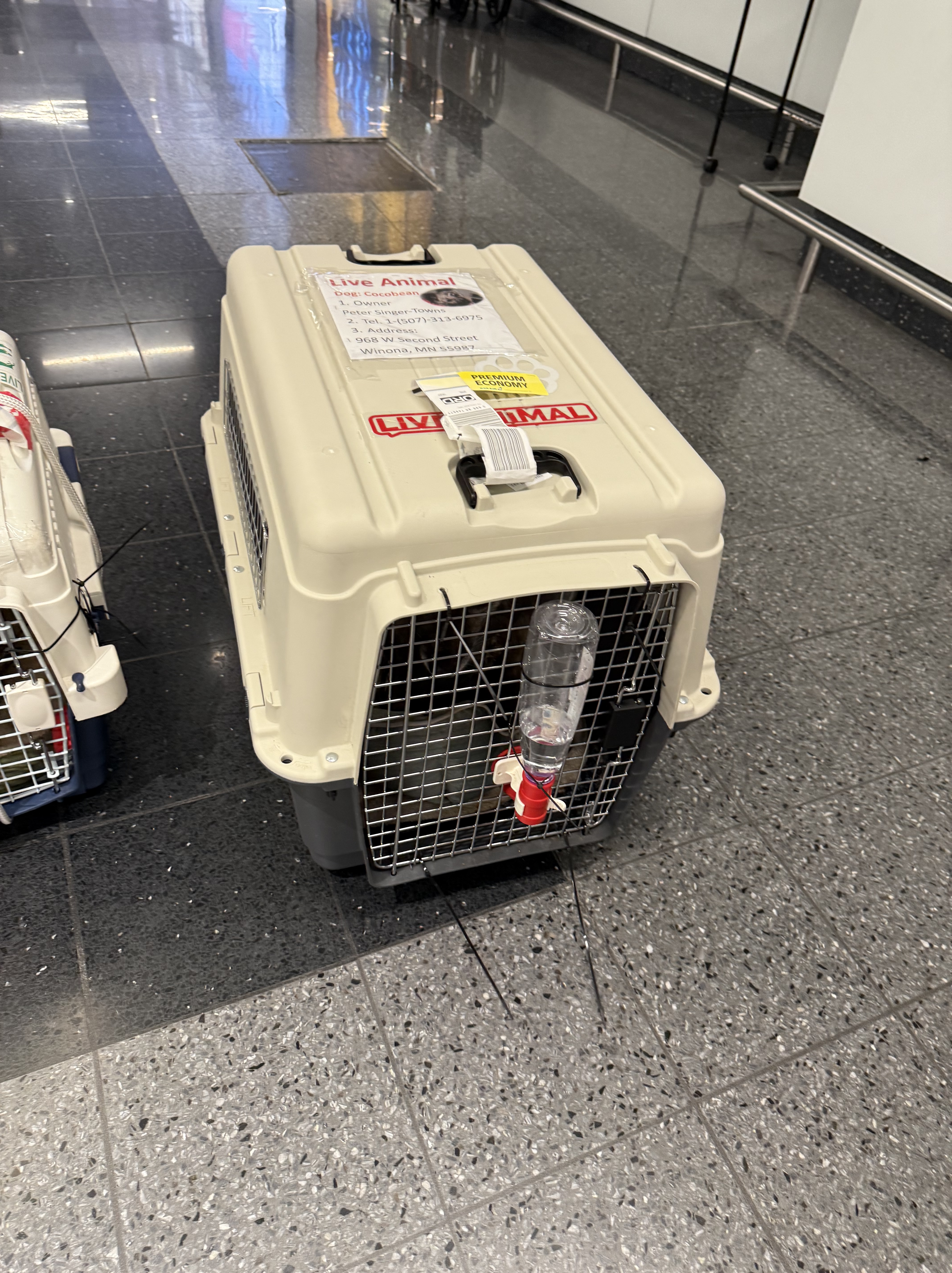 Our Latte weighs only 21kg, but his crate was huge (100L) and had a bed inside, so we went overweight — and had to pay extra on the spot 💸.